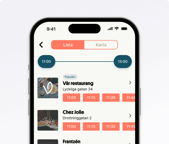 Varje dag söker tusentals personer lediga bord i vår sökfunktion. Träfflistan är sorterad på popularitet, för att ge besökaren bästa möjliga upplevelse. Säkra synligheten för din restaurang genom att köpa en sponsrad placering högt upp i sökresultatet under en tidsbegränsad period.